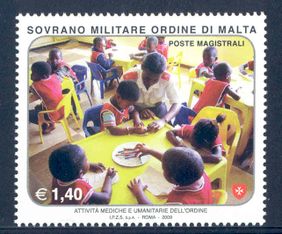 Issue date: 23 September 2009 Value: €1.40 stamp Design: Kindergarten in Whebede (South Africa) Brotherhood of Blessed Gérard - Relief Organisation of the Sovereign Military Order of Malta. Stamp size: serial 40 x 48 mm Perforation: 14 Edition: 12000 complete series Sheet: with 12 stamps Printing: Offset. I.P.Z.S. SPA - Rome Paper: fluorescent without watermark Photo: Father Gerhard Tonque Lagleder OSB